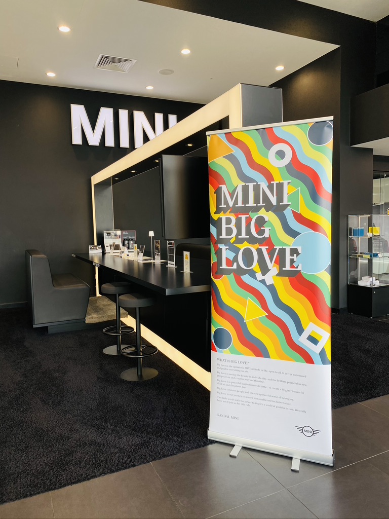 I have had the great pleasure to work on some creative assets for MINI’s Sandal branch here in West Yorkshire. The project included multiple point of sale assets, Window Stickers, Pull up Banners, Tote Bags and a few other various items. Taking inspiration from MINI’s European partners and adhering to their corporate identity guidelines I created some colourful visuals that would parallel MINI’s fun loving ethos.
