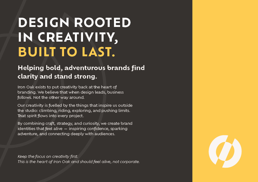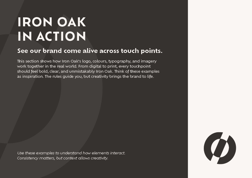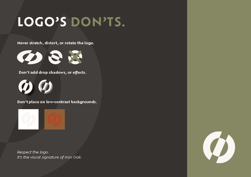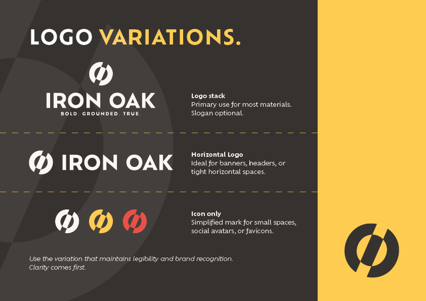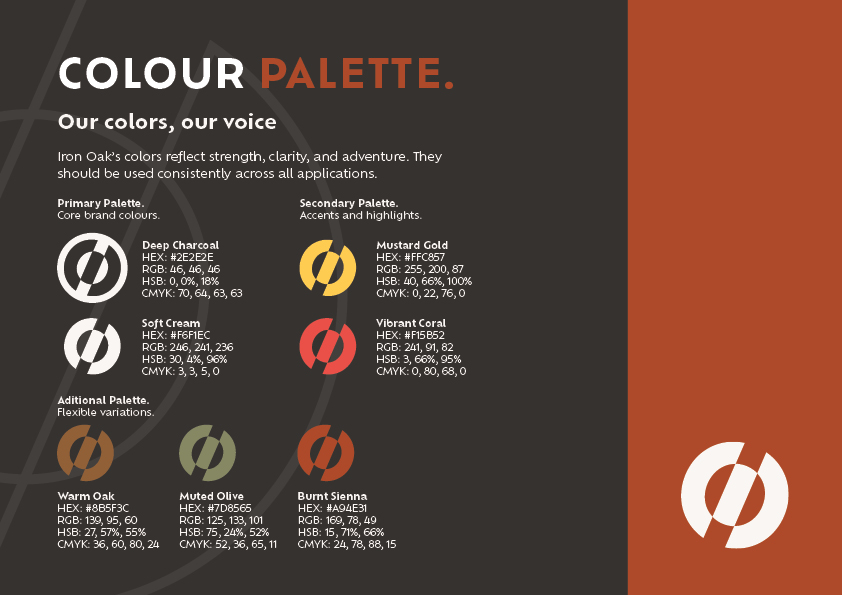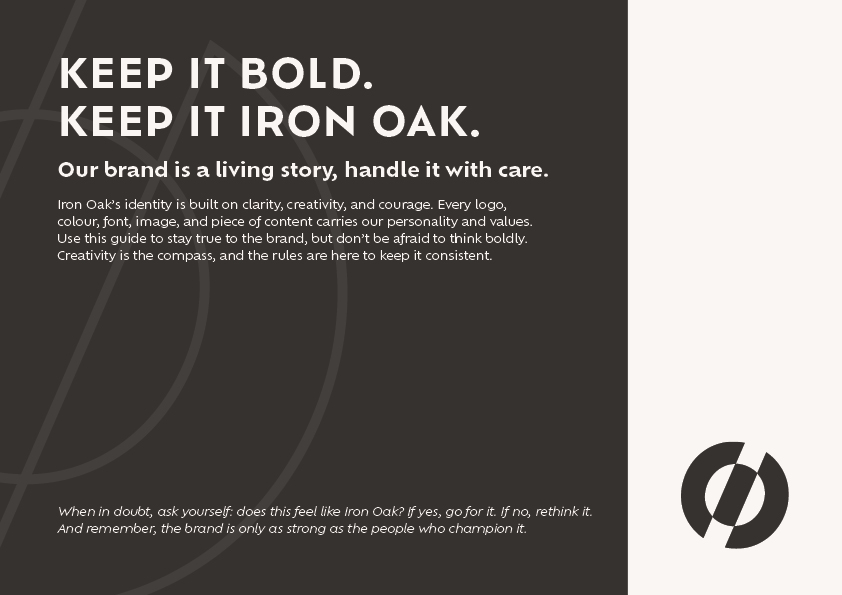 Iron Oak is more than a creative alias; it is a strategic sandbox where design leads and business follows. These guidelines serve as the operating system for the studio, defining a visual identity built on the values of “Bold. Grounded. True.”